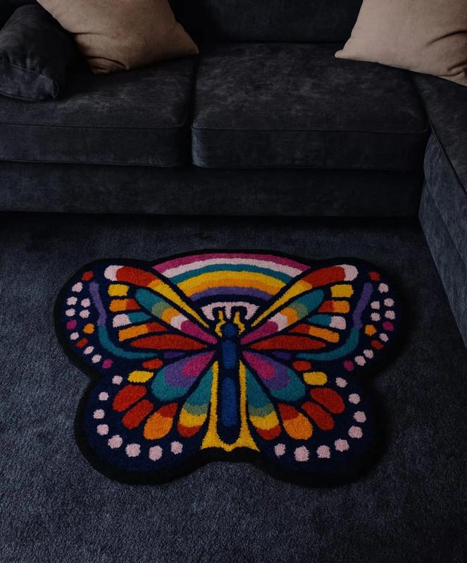 Tappeto trapuntato farfalla arcobaleno - Fatto a mano